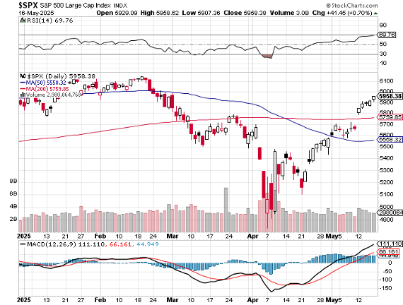 So where does that land us in terms of timing today? This implies that the S&P 500 could be pressing new all-time highs as soon as around Memorial Day. Now this timing may be a touch ambitious in the current market, as the S&P 500 is now arriving at overbought levels with a Relative Strength Index (RSI) now effectively at 70. This implies that we are now overdue for at least a short spell of consolidation before making the final roughly two hundred S&P 500 point push back to new all-time highs. Nonetheless, the current stock market remains solidly on this encouraging upward trajectory.